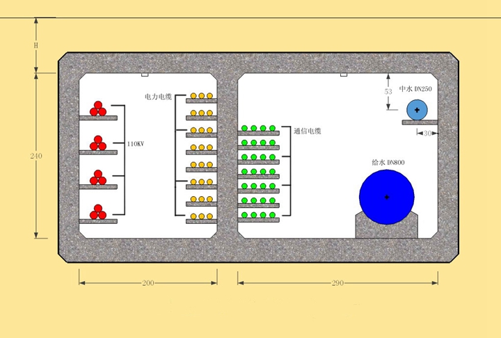 綜合管廊沿濟(jì)南奧林匹克體育中心的奧體西路、奧體北路和龍洞路敷設(shè),全長約4公里。納入管線有給水、中水、通信、電力管線。